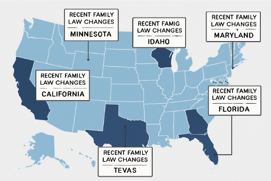 Every state is actively revising family law policies on child support, divorce, alimony, and custody to better address contemporary family dynamics. Efforts range from California seeking to update the child support formula and recognition of parental rights to Florida’s significantly revised alimony laws, as well as Maryland’s more empathetic stance on divorce and kinship care. All these reforms serve to sustain families within the changing sociocultural structure. This article reviews the most recent changes by state to illustrate the extent to which legislation is changing family law in the United States.
